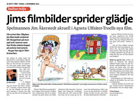 ”Med fötterna på jorden” heter mitt senaste projekt gjort tillsammans med filmklipparen Olle Tannergård, Flirmfilm, i Hököpinge och Jim Åkerstedt, riksspelman och tecknare från Täby.